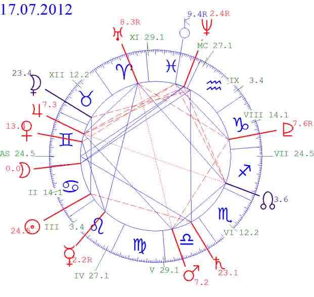 Marți 17.07.2012 la ora 03.29 (ora de vară) Luna intră în primul grad din Rac. Acest moment marchează un eveniment extrem de important, cu implicații incredibile pentru viața fiecăruia dintre noi. Este un fel de preambul, o pregătire metodică și minuțioasă, o sensibilizare a sufletelor noastre în vederea importantului aflux de forțe ce se va revărsa în momentul exact al Lunii Noi, în noaptea de miercuri spre joi 19.07.2012 la orele 07.21 (ora de vară).