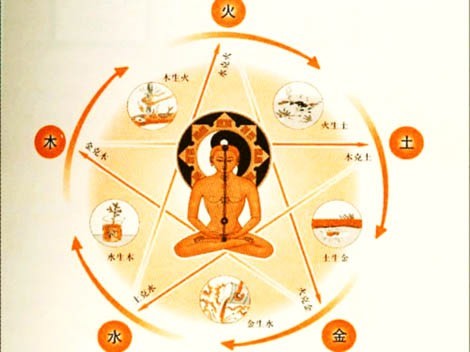 Apa înseamna tot ce am adunat in structura noastra profunda (subconstient, inconstient, arhetipuri), ceea ce mostenim de la parinti, ceea ce am invatat, dar si frica si voinţa, iar in planul sanatatii, rinichiul si organele subordonate lui, in medicina chineza: urechea, oasele, sfera genitala, fertilitatea. Focul, celalalt element, da directia de evoluţie, simbolizeaza spiritualitatea, sufletul, credinta, bucuria de a trai, iubirea, energia mentala sau, cum spun chinezii, spiritul Shen. In planul sanatatii, focul simbolizează inima si intestinul subtire, dar si o a doua pereche de organe virtuale sau funcţii: pericard-trei focare, prezente in medicina chineza, si care in fiziologia moderna corespund cu axul hipotalamus – hipofiza.